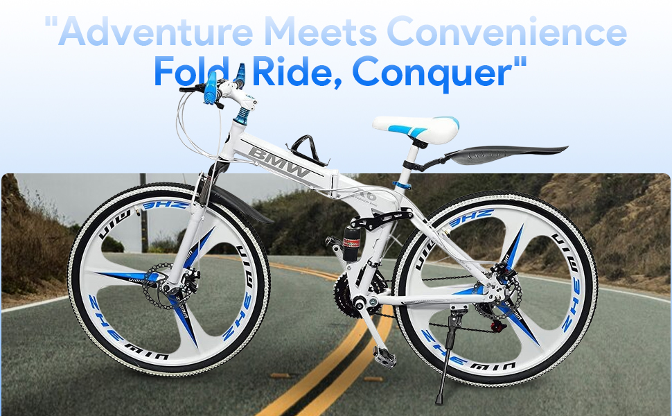 🔥 Vélo pliable BMV pour homme | VTT 26 pouces avec 21 vitesses, freins à disque doubles, suspension hydraulique, roues en alliage | Vélo de sport pliable pour adultes